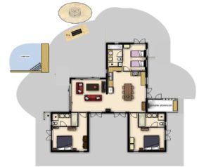 De villa heeft 3 ruime 2-persoonsslaapkamers met muskietennetten boven de bedden en voor de ramen en hebben allen en-suite badkamers. Elke slaapkamer heeft zijn eigen unieke uitzicht.
